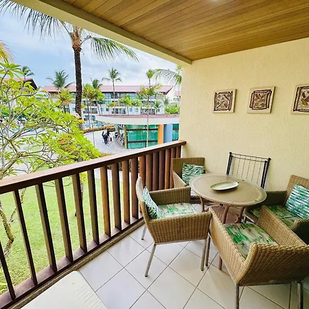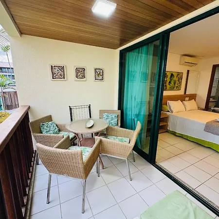 Den strandnära villan Flat Beiramar Em Muro Alto | Marulhos Resort F206 - By Anfitriao Legal Pôrto das Galinhas, som ligger 3 km från Gaipio Sugar Cane Mill, erbjuder gästerna en terrass där de kan koppla av.